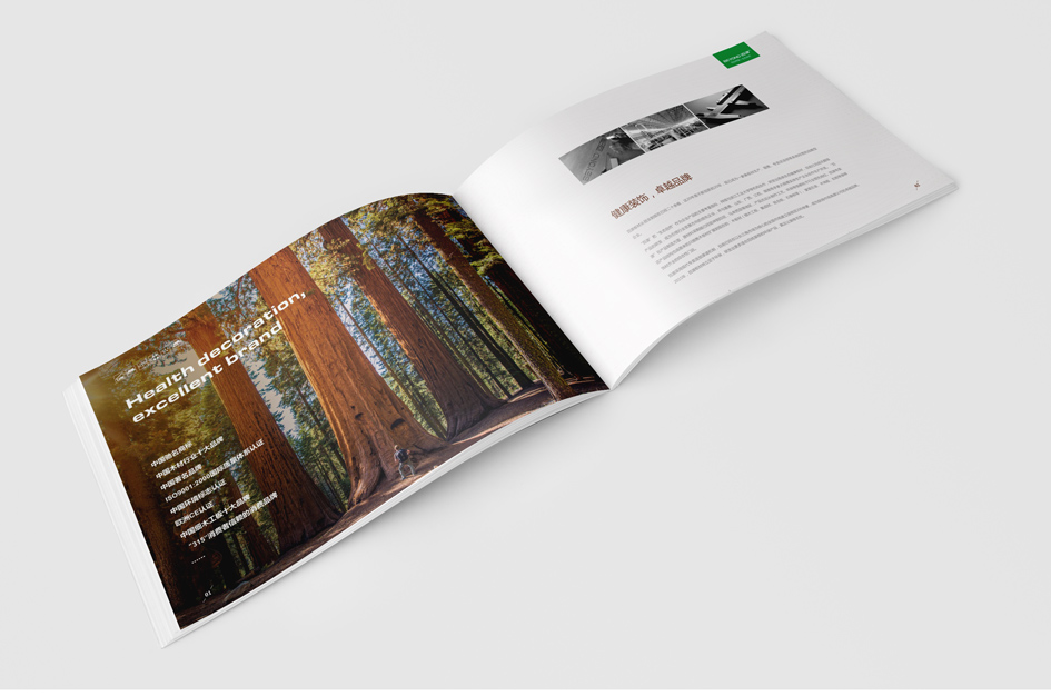 百品同源,生態(tài)自然 千里生態(tài)自然,于此綿廷不絕;百品同出一源,融匯時(shí)尚經(jīng)典 道法自然,以不拘于形的超然之態(tài),詮釋健康環(huán)保的現(xiàn)代家裝理念 畫(huà)冊(cè)設(shè)計(jì)清新自然,完美呈現(xiàn)