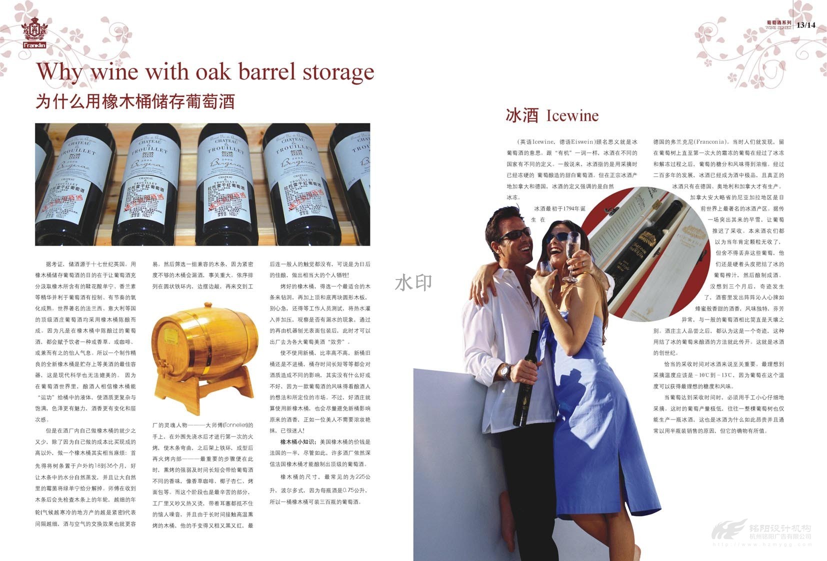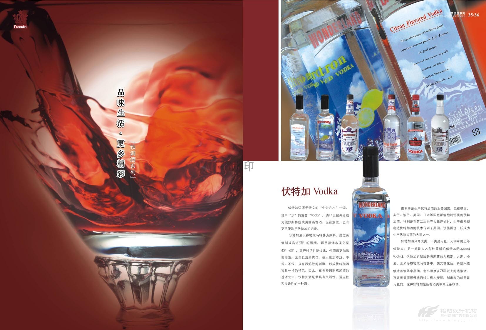 “只為懂生活的您......”,“一次邂逅·此生心傾”。美國富蘭克林酒業(yè)成立于1933年,是美國第二大品牌,宣傳冊設(shè)計概述了葡萄酒歷史,法國五大頂級酒莊,如何鑒別、鑒賞紅酒,葡萄酒的分級及餐桌禮儀等。圖文并茂,精美絕倫,是一本值得收藏的畫冊。