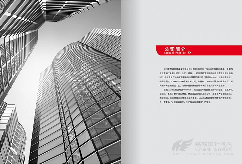 杭叉集團位于杭州青山湖工業(yè)園,中國大企業(yè)集團競爭力500強、中國制造業(yè)500強,銘陽廣告公司很榮幸參與集團畫冊設(shè)計、產(chǎn)品 攝影、車貼設(shè)計制作、展會海報設(shè)計等。